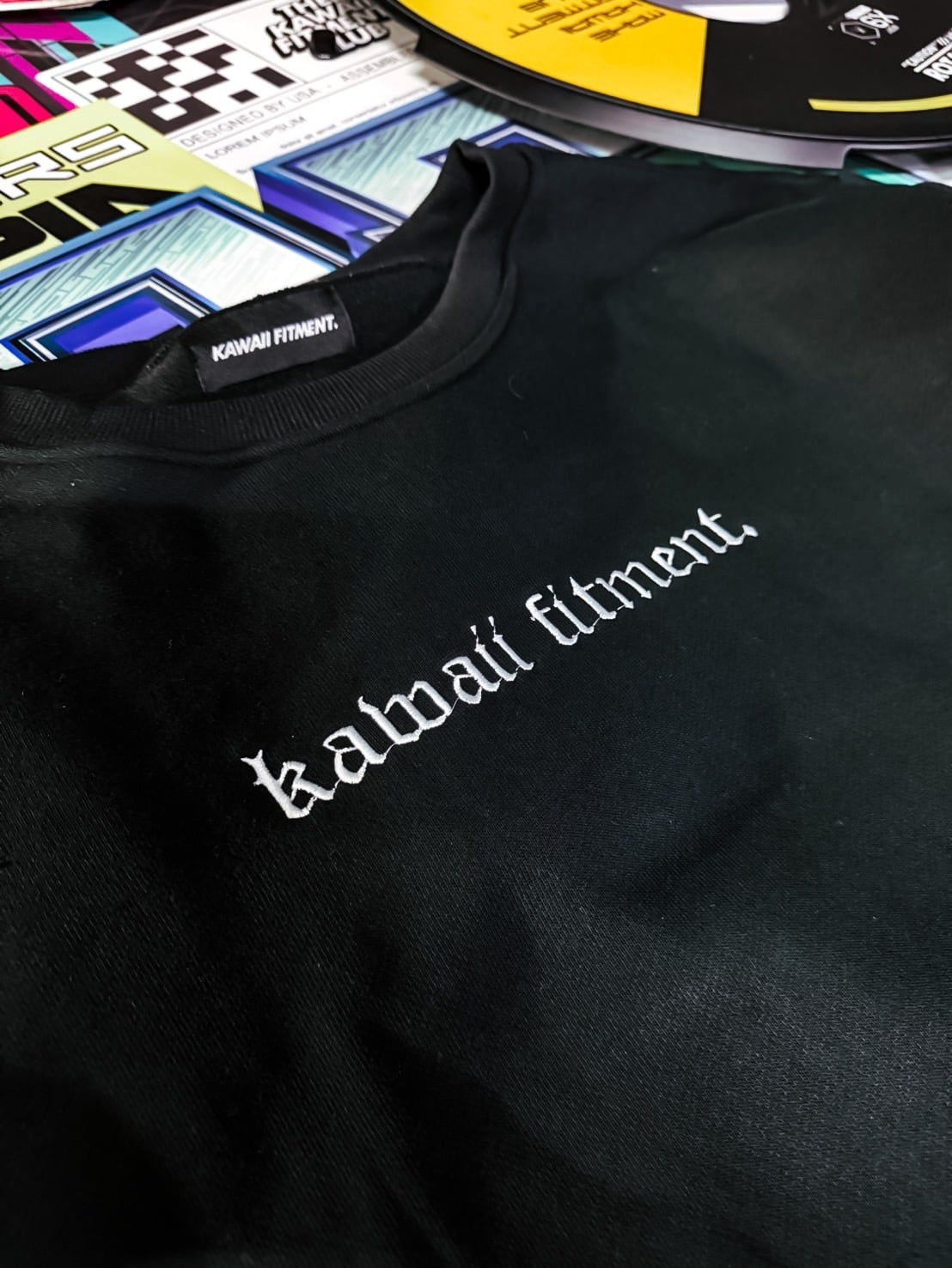 KAWAII FITMENT. black letter LOGO sweat